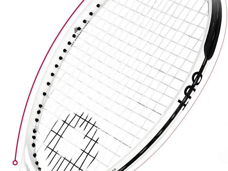 40T Hi-modulus Carbon Fiber is strategically placed at the 3 and 9 o’clock positions of the racquet to enhance the impact zone, increasing the sweetspot, stability and power of the racquet.